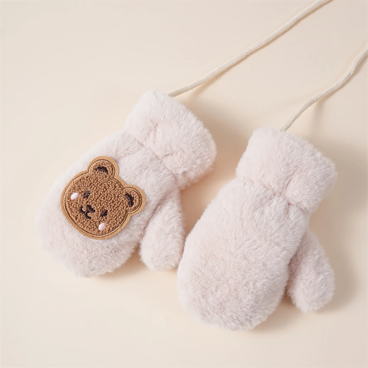 Faux Fur Baby Gloves Cute Bear Plush Warm Toddler Boys Girls Mittens Kids Winter Outdoor Fingerless Gloves With Rope