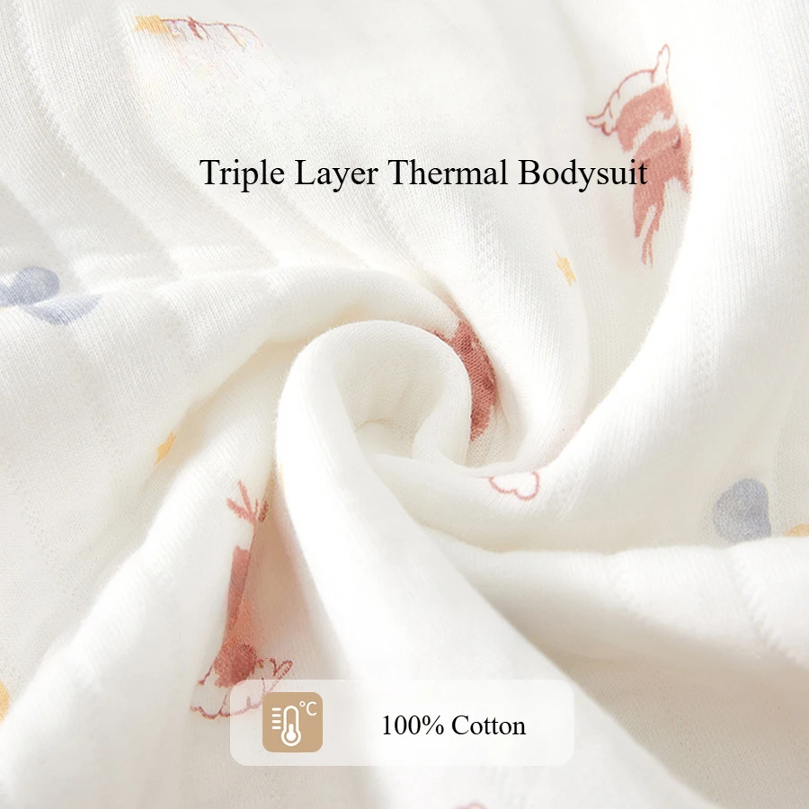 This soft and warm baby romper is designed to keep your little one snug during cool weather. The outer layer is made of 100% cotton for gentle, breathable comfort, while the inner layer features 100% polyester for lightweight insulation and warmth.