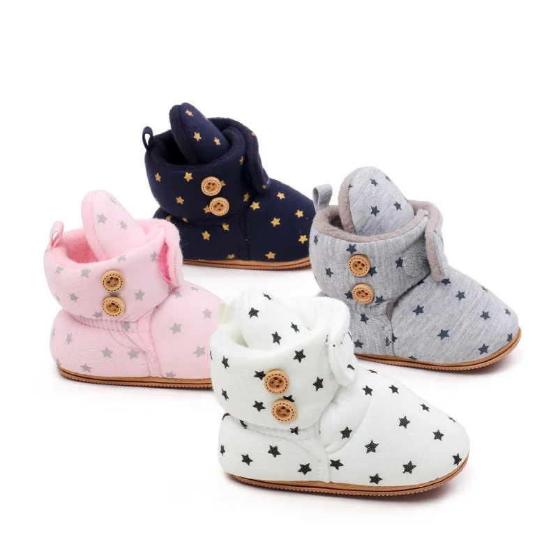 2024 Winter Baby Boots, Infant Girls Boys Warm Fashion Solid Shoes with Fuzzy Balls First Walkers Kid Shoes 0-18M High Quality