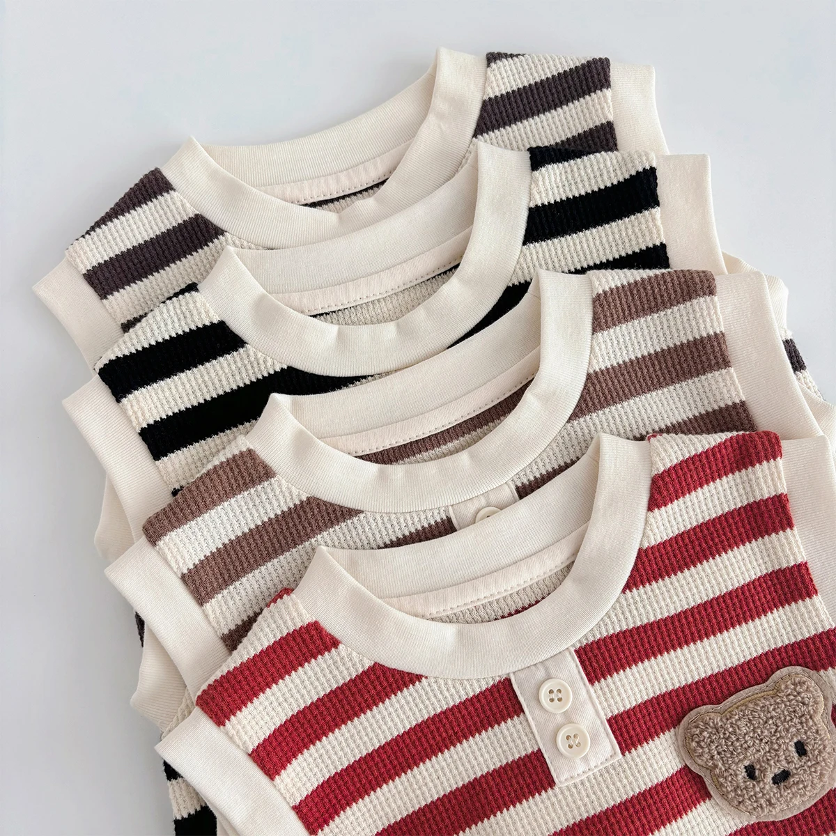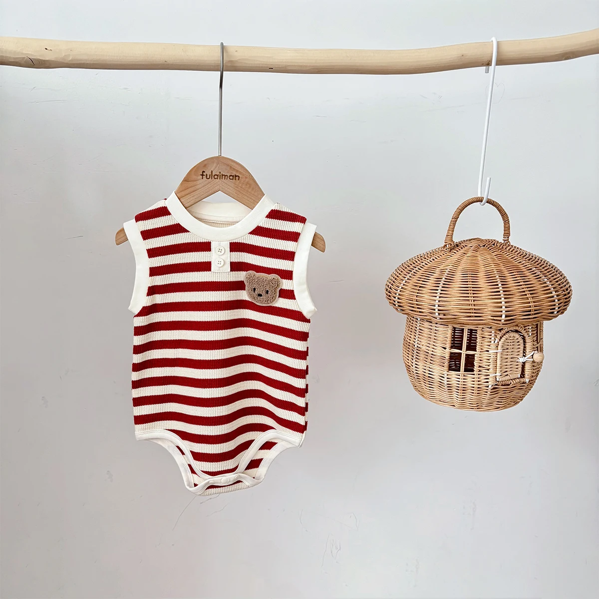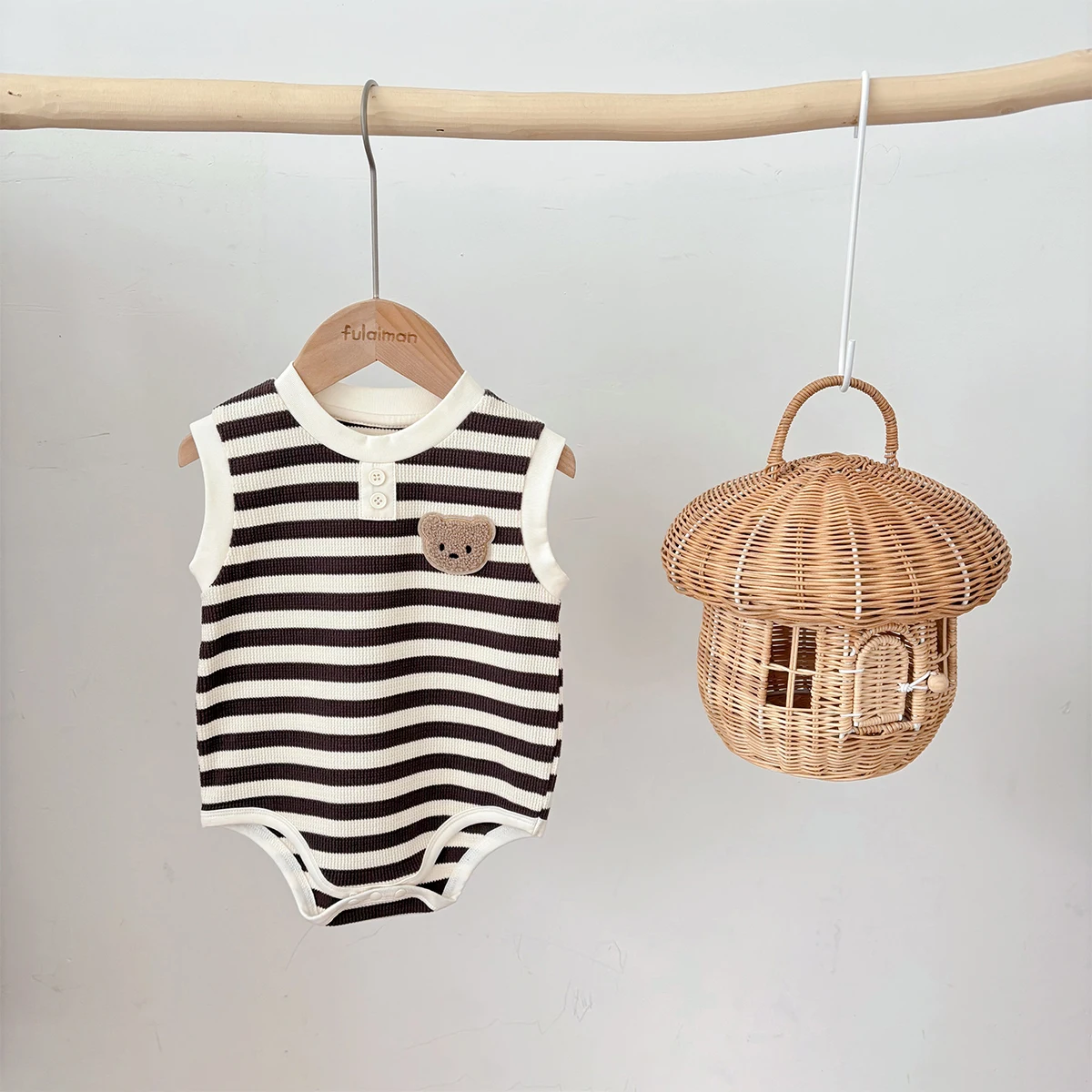 Summer Baby Striped Vest Triangle Bodies Baby Cute Bear Pattern Vest Bodies