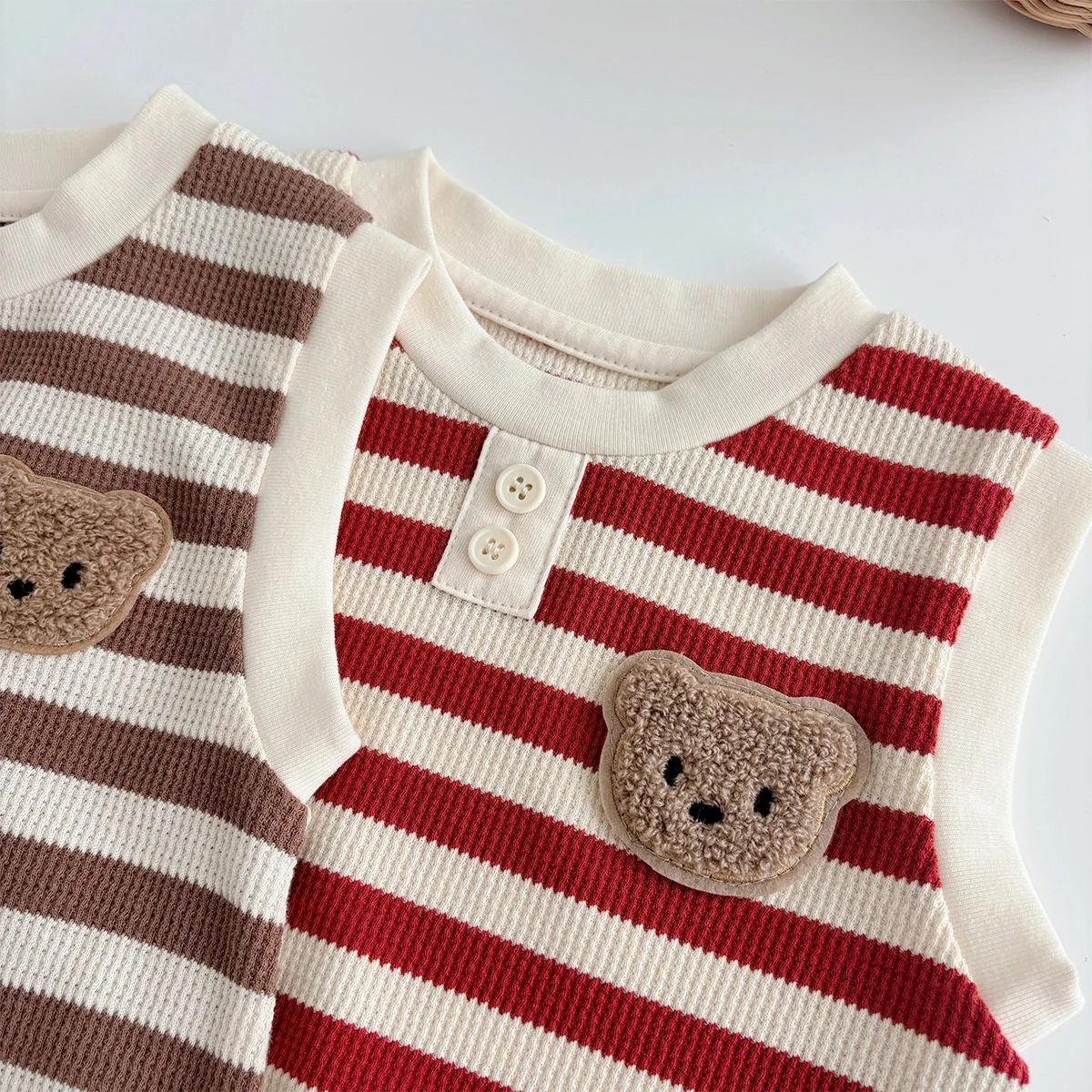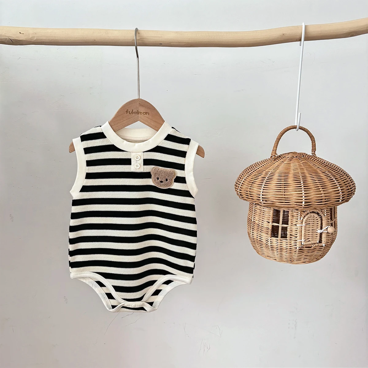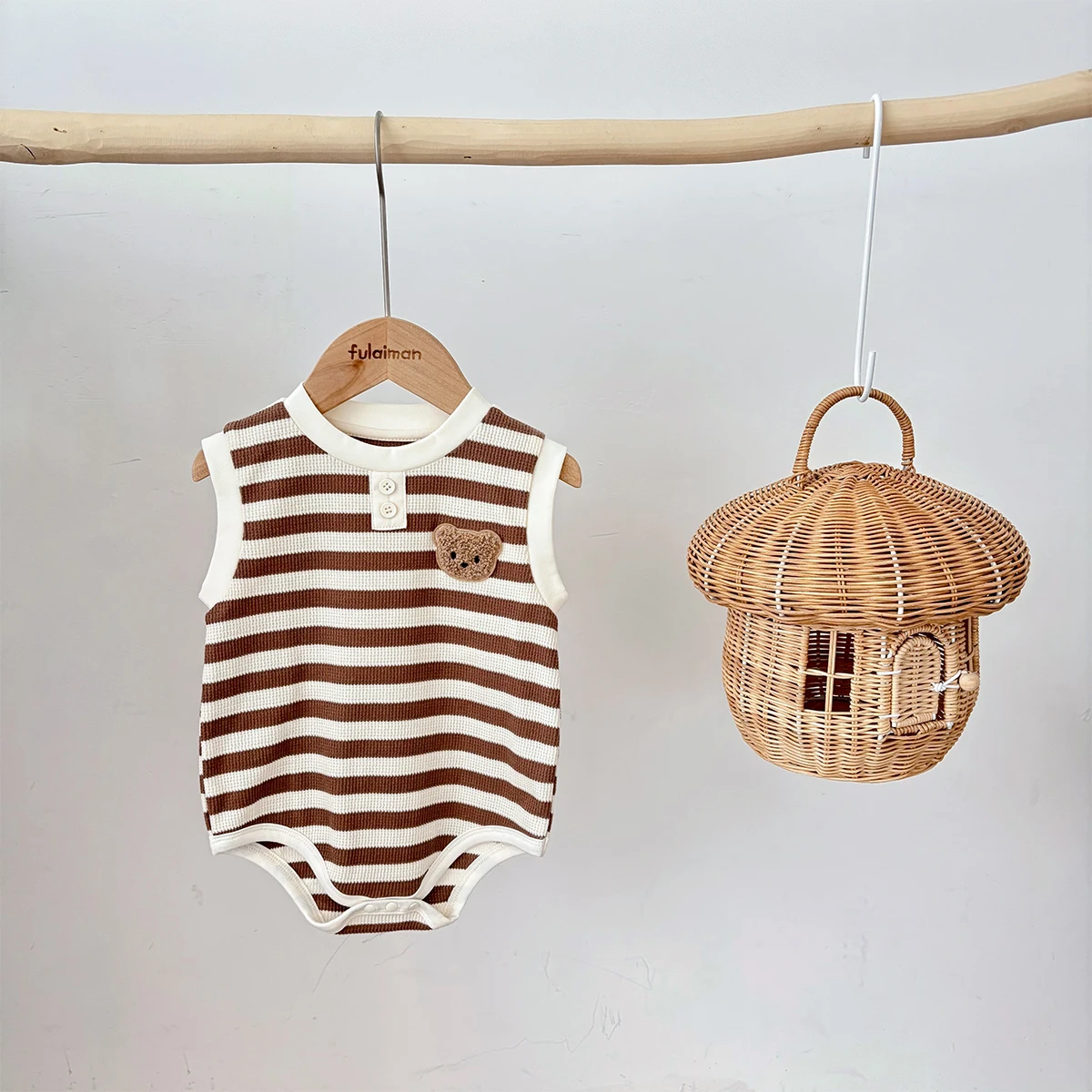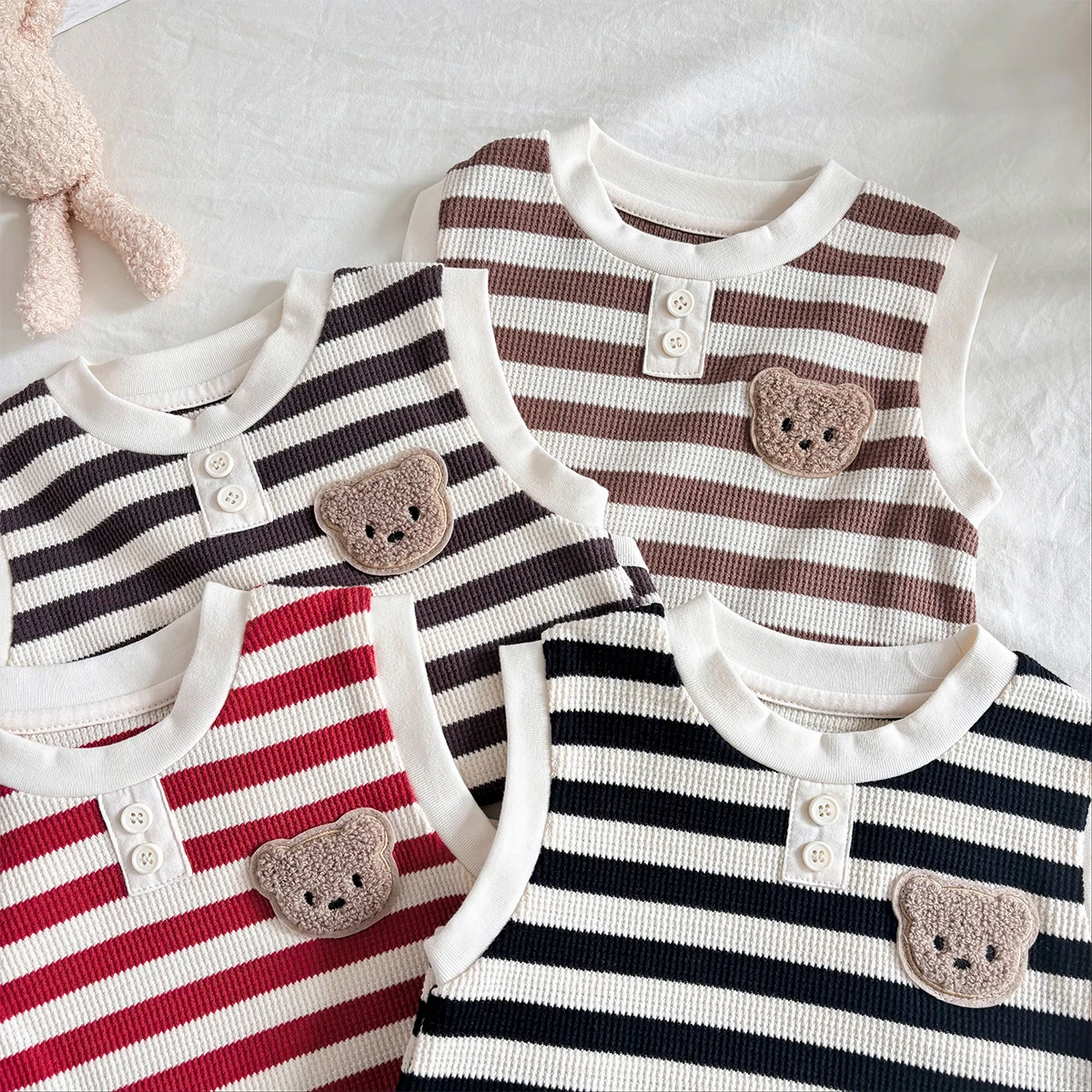 Summer Baby Striped Vest Triangle Bodies Baby Cute Bear Pattern Vest Bodies